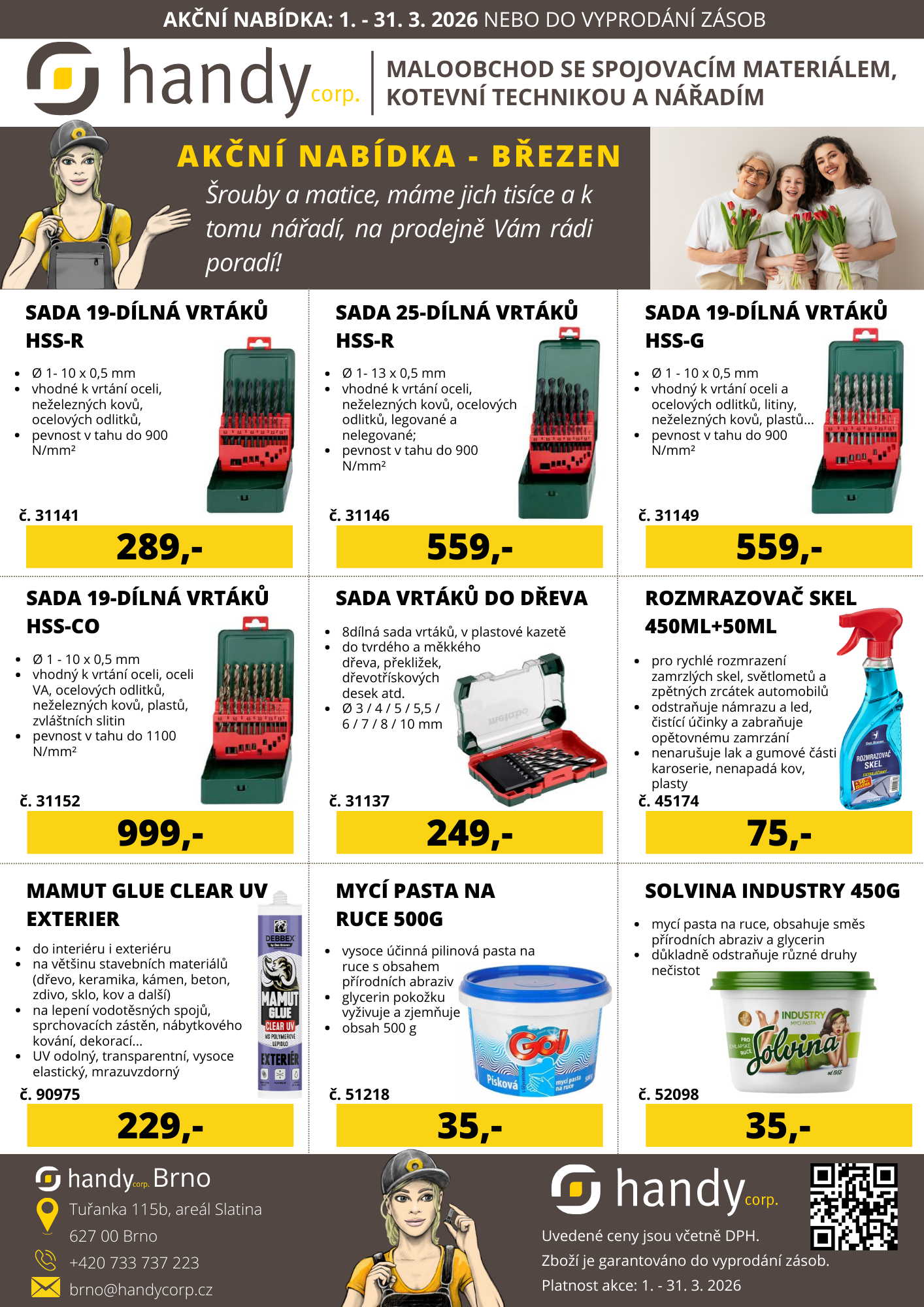 🔥 Akce probíhá jenom krátce, proto neváhejte a stavte se za námi do Brna. Pokud budete potřebovat poradit nebo doporučit vhodný produkt, rádi Vám pomůžeme. Jsme tu pro Vás i Vaši dílnu.