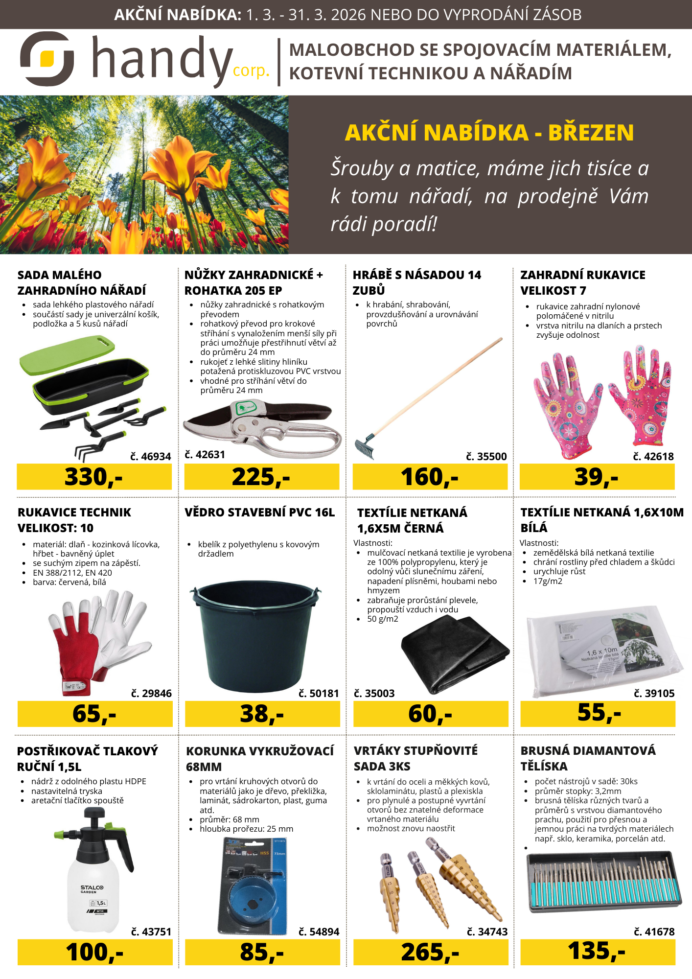 Máte rádi jaro a práci na zahrádce🏡? Akční nabídka na prodejně handy corp. Prostějov je přímo pro Vás. Nepromarněte příznivé ceny. Máme pro Vás nejen hrábě, zahradnické nůžky, netkané textilie ale mnohem víc.